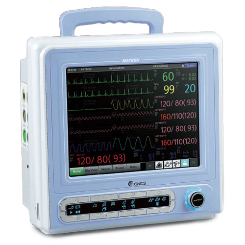 • 10.4¡± Large touchable LCD display of 800x600 • Configurable up to 12 waveforms • 3ch ECG(12ch EKG option) Resp, NIBP, SpO2, 2IBP(4IBP option) 2Temp(4Temp option) EtCo2(Main stream/Side Stream) option Optional Cardlac output, Optional Multi Gas (CO2, N2O) • 13 kinds Of Arrhythmia Detect • 1200 of ECG Recall for 20seconds • Unlimited configurations and flexible parameter position at user's command • 30 days of graphic and list trends(mini trend screen) • 120 episodes of alarm event recall for 20 seconds event data & graphic, which can be zoomed to observe and to print out • Easy to upgrade Software by SD Card (Max. 16G) • 2 rechargeable Li-ion batteries offer up to 5 hours of operation time • RS-232C interface, VGA Out, Nurse call port • EMR, HL7, Wired & Wireless Central Station