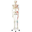 The human muscle skeleton model has all the high quality of any 3B Scientific¢ç skeleton but additionally offers representations of the structural interaction between bones and muscles. This model of a human skeleton depicts over 600 structures of medical/anatomical significance including muscle origins (red) and insertions (blue) on the left side as well as hand numbered bones, fissures and foramina on the right side. An amazing high quality replica of the human skeleton.